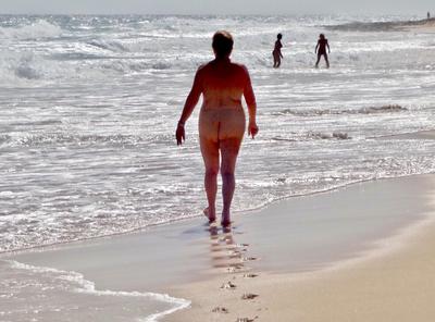 Stunning beaches abound in Fuerteventura, you find it difficult to define where beach and desert begin. Corraljo is perhaps the best but it is a matter of opinion...you can walk naked for at least a couple of miles from the parking area on the main road but the naturist area is quite ill defined, you almost feel you can be naked straight from your car! (See pictures) Lovely beach and sea but it is true that the water is often carrying quite a swell and undertow on a steeply shelving beach but guards are on duty. Real mix of naturist and textile which takes a bit of getting used to, but no one seems bothered either way. Not crowded when we were there in September, but you can only get there by parking on the road which in itself restricts the numbers on the beach. Nearest large car park is at the hotels about 4 miles to the north which is a fair trek.